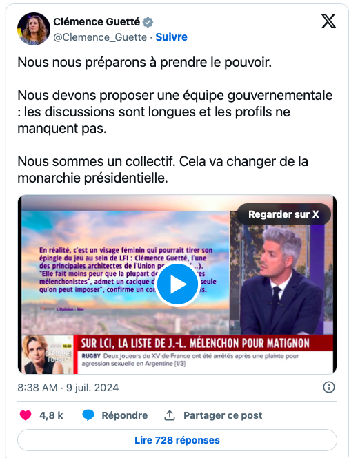 Avec une force de 182 sièges, le Nouveau Front Populaire (NFP) ne s’impose malheureusement pas à l’assemblée. Malgré ça, il se peut que le nouveau Premier ministre soit de gauche. Mais alors qui ? À savoir qu’il faut une personnalité qui représente au-delà de la gauche, pour éviter la motion de censure. Et pour cela, plusieurs noms reviennent. Tel que Clémence Guetté, Clémentine Autain, François Ruffin, Marine Tondelier, Olivier Faure…