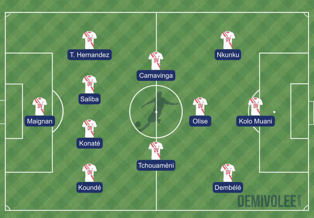 La défense ne bouge pas comparée aux dernières rencontres des Bleus sauf pour Ibrahima Konaté qui remplace Dayot Upamecano (blessé). Au milieu, Eduardo Camavinga fait son grand retour après une blessure. Il sera aux côtés de son nouveau capitaine. En attaque, Michael Olise devrait être au cœur du jeu de l’Équipe de France et palier la retraite d’Antoine Griezmann. Ousmane Dembélé et Christopher Nkunku devraient animer les couloirs tricolores. Le numéro 9 des Bleus sera l’attaquant du Paris Saint-Germain : Randal Kolo Muani.