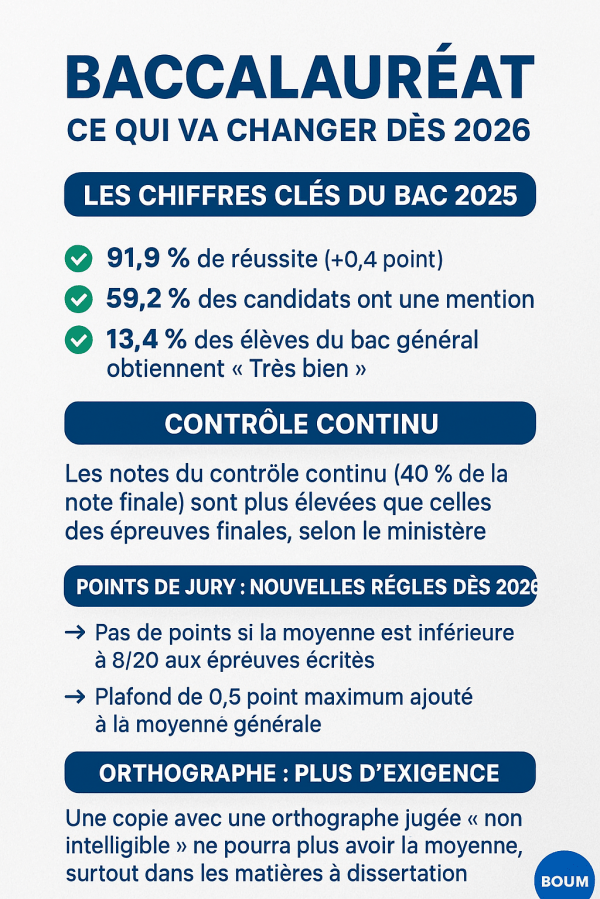 Publié à 15h Alors que près de 92 % des élèves obtiennent aujourd’hui le baccalauréat, le ministère de l’Éducation nationale entend renforcer la valeur du diplôme. Le ministre Édouard Geffray a détaillé ses projets, dont deux nouvelles mesures majeures concernant les points de jury et les conditions de repêchage, destinées à introduire davantage d’exigence dès... Lire la Suite →